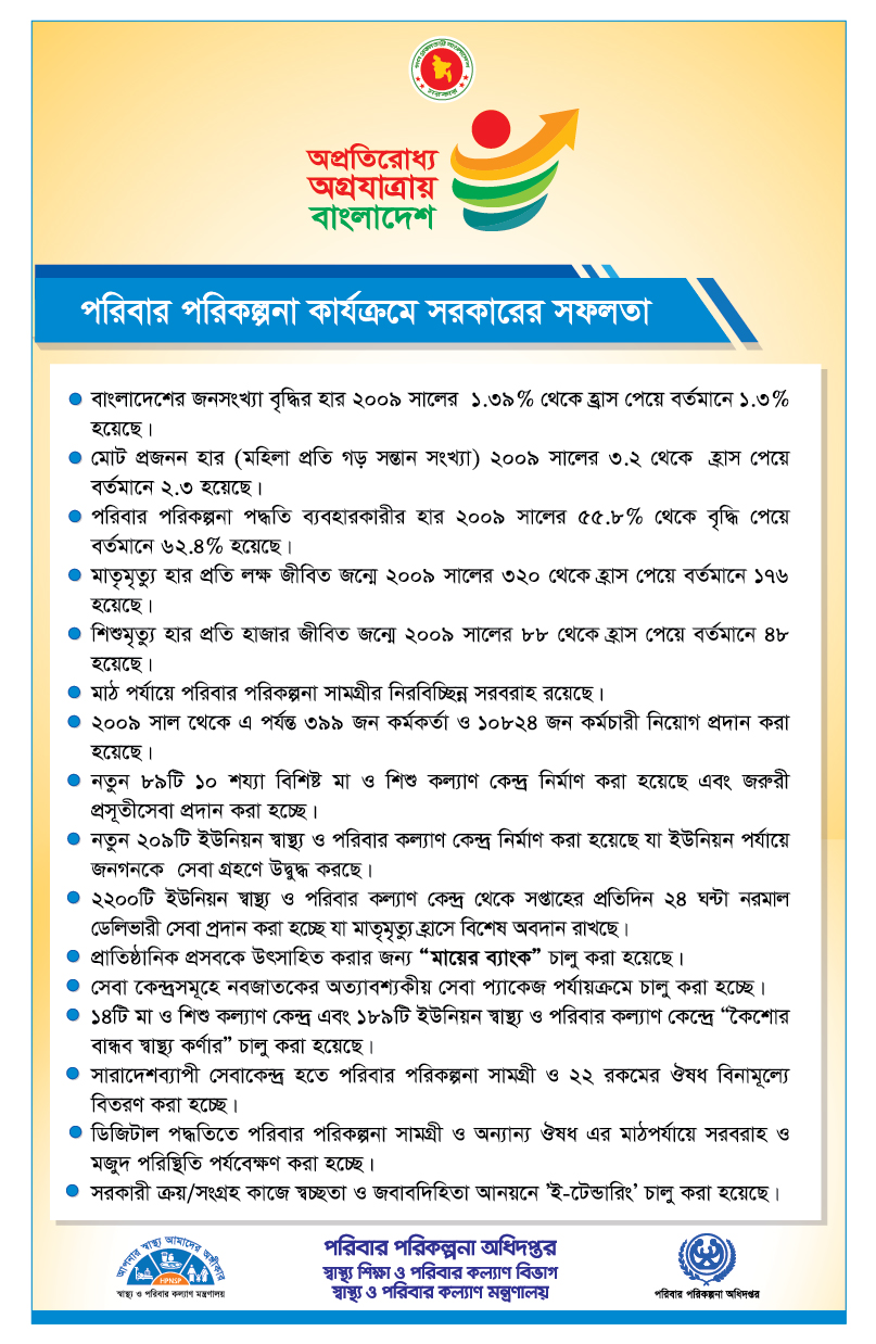 পরিবার পরিকল্পনা বিভাগের উন্নয়ন (২০০৯-২০১৭)